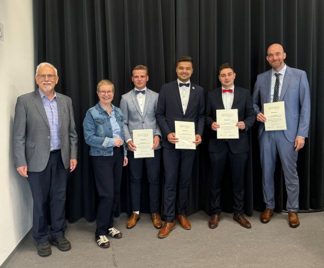 v.l.n.r.: Josef Grave, Veronika Olrbich, Robin Timmerhuis, Joss Legtenborg, Niklas Welling und Michael Griesen, Lehrer an der BBS Gesundheit und Soziales.