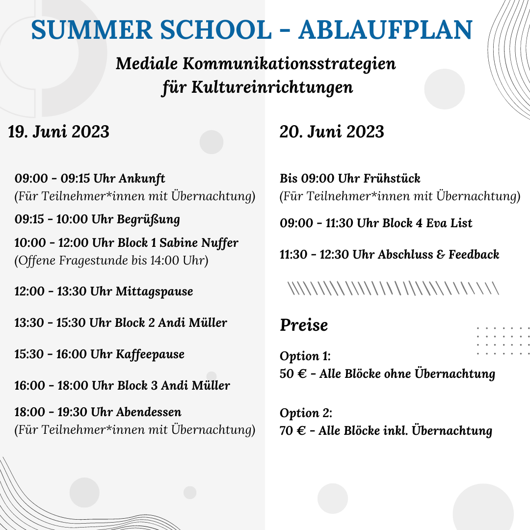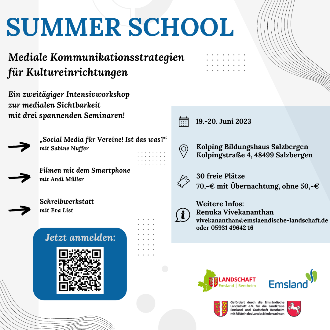 Mit der ersten Summer School am 19. & 20. Juni 2023 im Kolping-Bildungshaus Salzbergen wollen wir nun diesem Trend entgegenwirken. In einem zweitägigen Workshop mit drei spannenden Seminaren werden wir innovative Möglichkeiten aufzeigen, um in dieser schnelllebigen Zeit sichtbar zu bleiben.