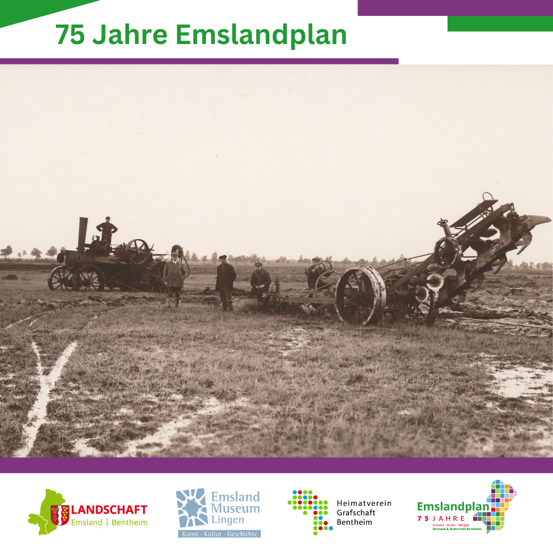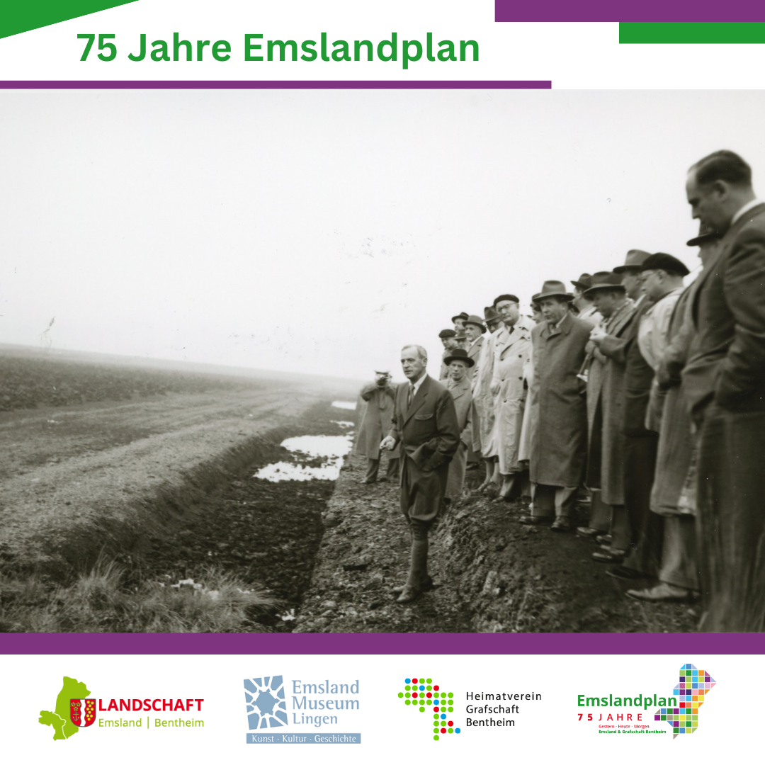 Am 5. Mai 2025 startet unter der Gesamtkoordination der Emsländischen Landschaft ein Jubiläumsjahr zum Emslandplan. Ein Jahr lang wird es an verschiedenen Orten im Emsland, der Grafschaft Bentheim und darüber hinaus Veranstaltungen, Ausstellungen. Vorträge, Lesungen, Konzerte und vieles mehr zum Thema „Emslandplan“ geben. Das Jubiläum steht unter dem Motto „Gestern – heute – morgen“ und wird den Emslandplan nicht nur historisch untersuchen und vermitteln. Seien Sie gespannt.