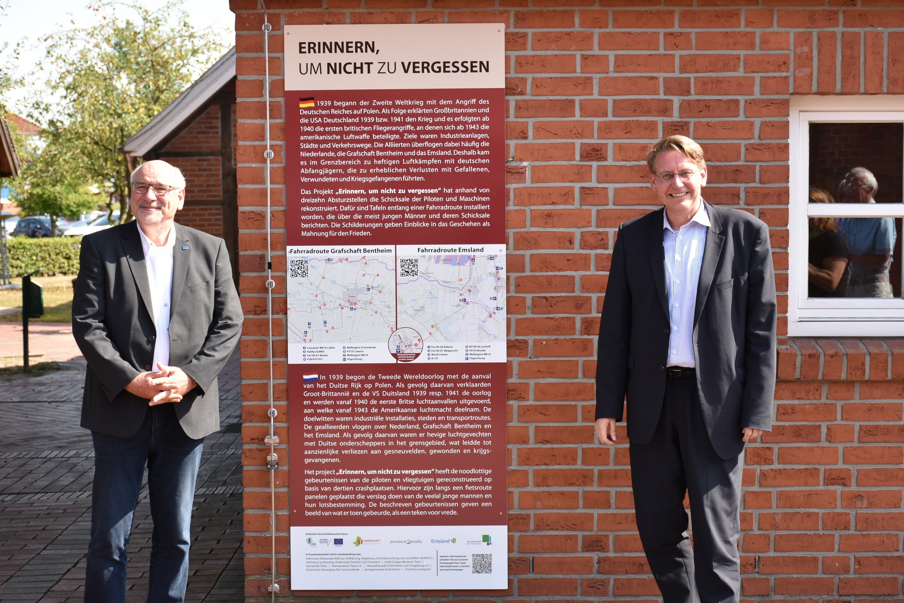 Das Projekt „Erinnern, um nicht zu vergessen“ hat zwischen 2021 und 2022 exemplarisch anhand von dreizehn Absturzstellen die Schicksale der Piloten und Maschinen rekonstruiert. Dafür sind Tafeln entlang einer Fahrradroute installiert worden, die über die meist jungen Männer und deren Schicksale berichten. Die dortigen Schilderungen geben Einblicke in das damalige Geschehen in der Grafschaft Bentheim und dem Emsland als Mahnung für den Frieden.