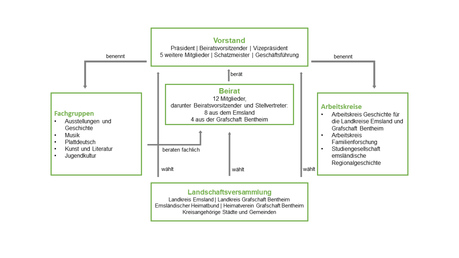 Der Vorstand der Emsländischen Landschaft e.V. besteht aus neun Mitgliedern, die für die Dauer von fünf Jahren gewählt werden.