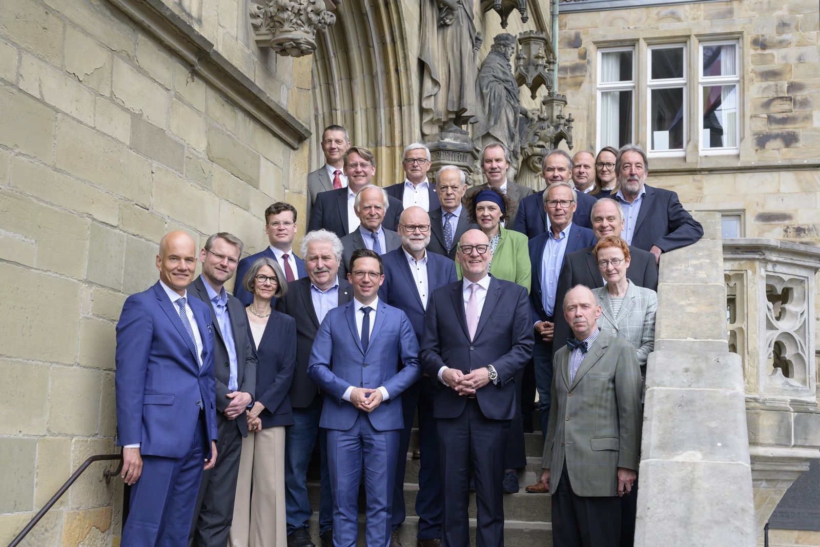 Die im historischen Osnabrücker Rathaus versammelten ALLviN-Präsidenten mit Kulturminister Falko Mohrs (vorne Mitte) neben Erstem Stadtrat Beckermann, vorne links Dr. Ulrich Knemeyer, VGH